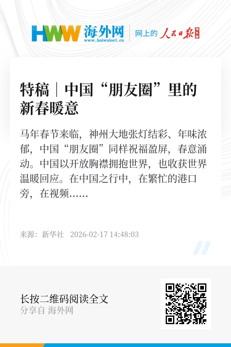 新春祝福跨越山海,合作脚步马不停蹄。在中国的“朋友圈”里,来自世界的每一句问候、每一份期许,汇聚起携手奋发、笃行致远的美好心愿,昭示着和平发展、合作共赢的共同选择。