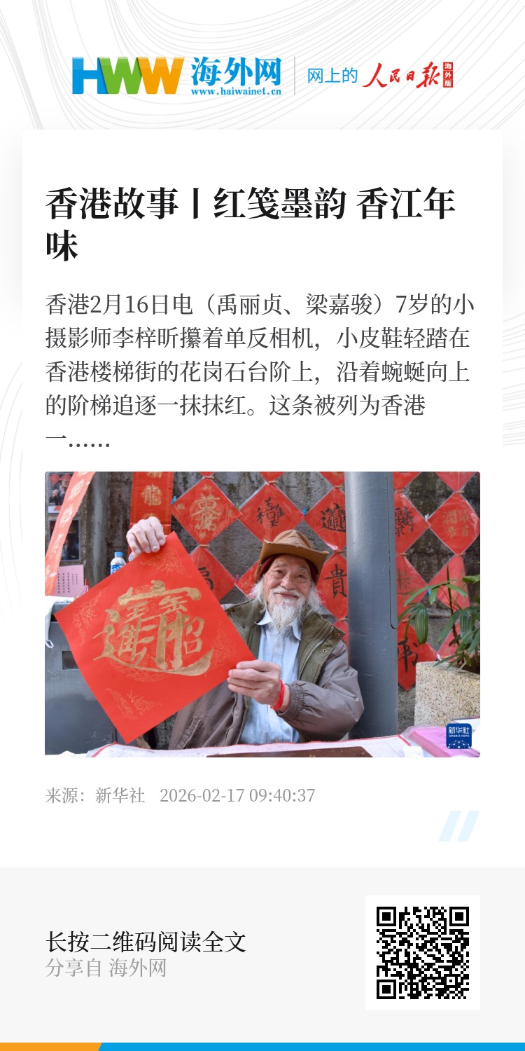 此刻,李梓昕的相机里,已存满楼梯街的年味:郭腾龙笔下金墨流转的挥春,萧颖妍设计萌趣灵动的卡通骏马,花岗石台阶上红笺轻扬的剪影,还有外国友人接过祝福时眼中的光亮。