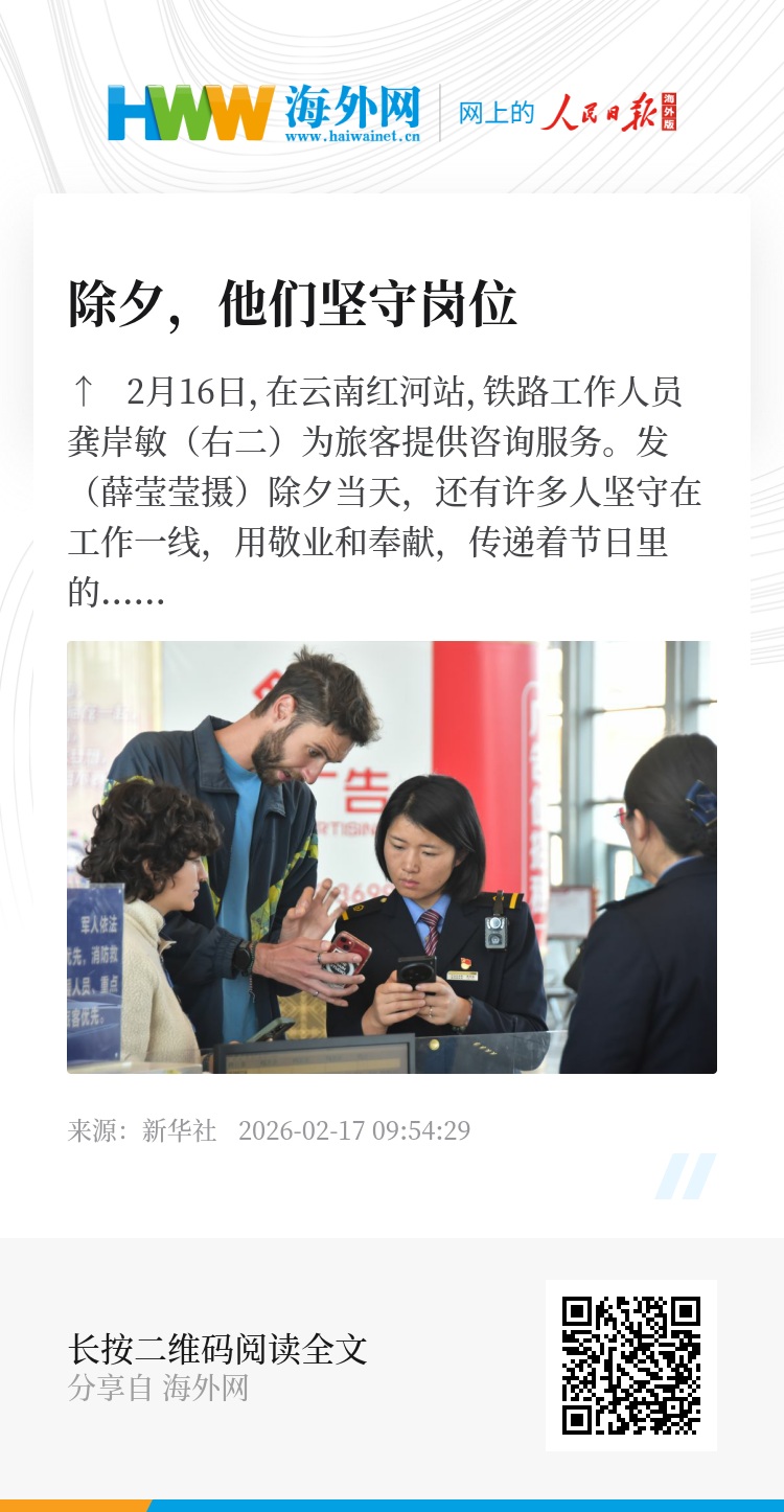 除夕当天,还有许多人坚守在工作一线,用敬业和奉献,传递着节日里的温暖。