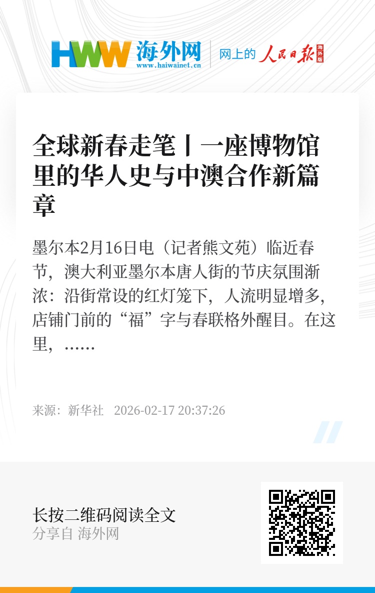 走出小巷,唐人街依旧熙熙攘攘。对记者而言,这次采访带来的启发在于:历史并未停留在展柜里,而是在节日的烟火气和现实合作中接续。跨越200年的澳大利亚华人故事,正持续为中澳关系的发展提供人文支撑与民意基础。