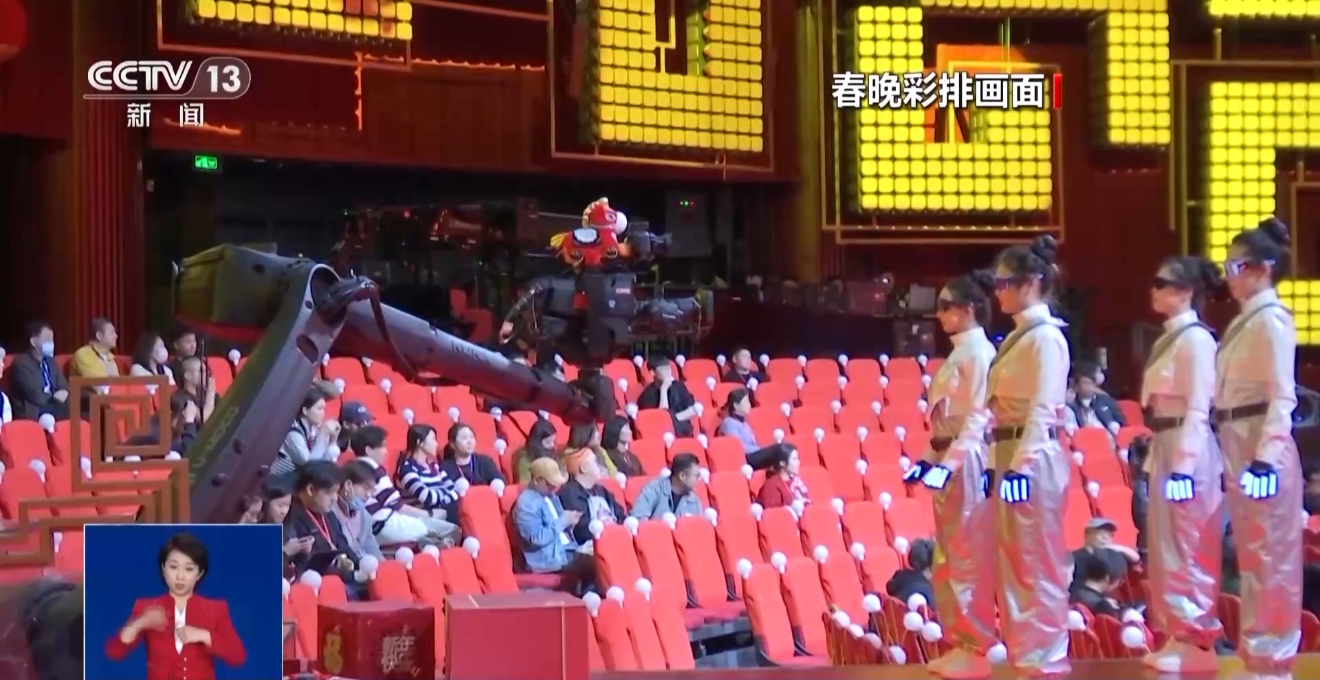 总台《2026年春节联欢晚会》总导播 卢刚:今年头一次用到咱们春晚上,用的是一个机械臂的摄像机,咱们今年春晚上把它用在直播上面,当一个常规机位来使用。它能做到每一个画面基本上每分每秒到哪儿,非常准,就拿它的编程,它最好的优势去做一个一镜到底的画面。