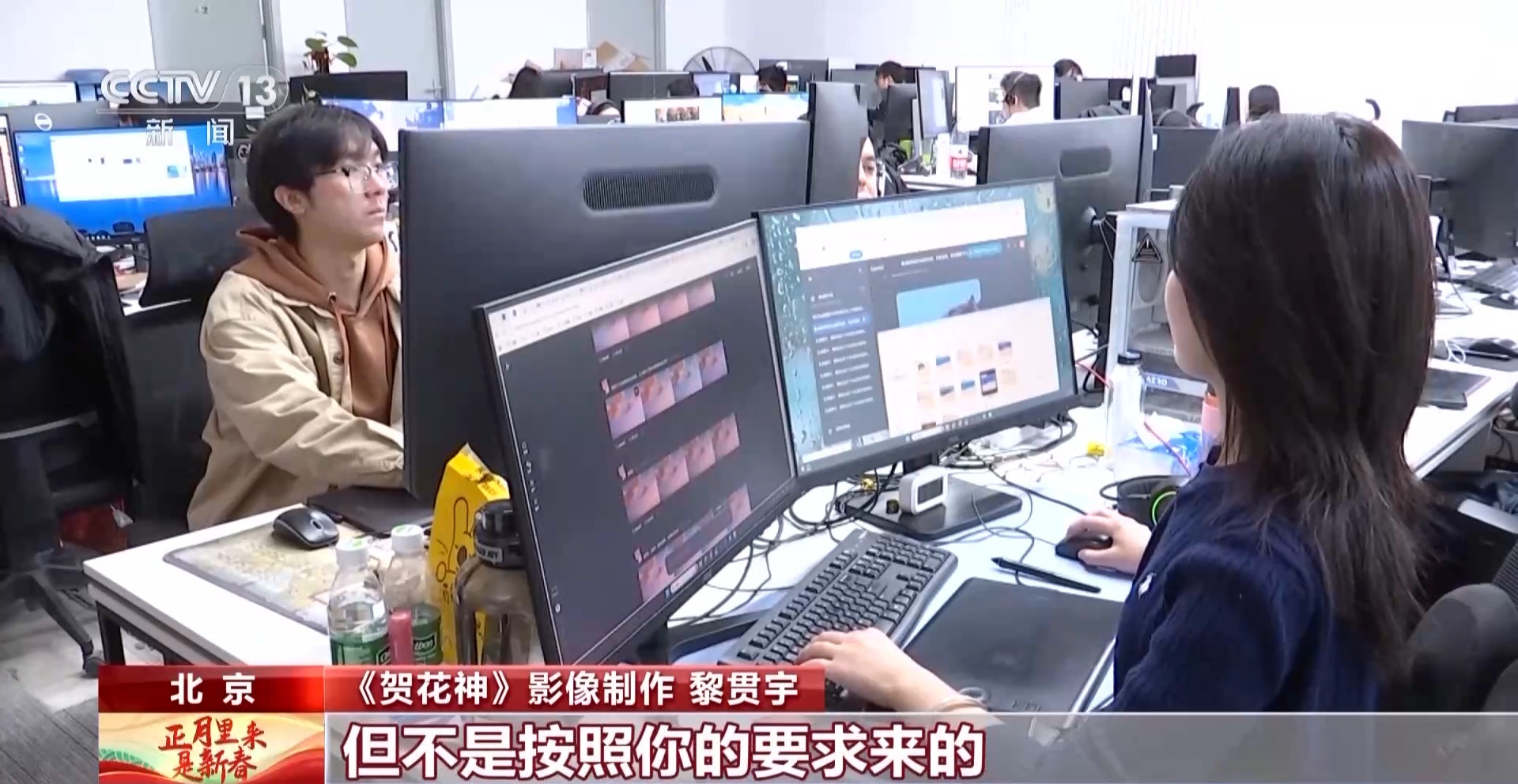 腊月二十四,虽然距离春晚直播只有几天的时间,但是《贺花神》的人工智能视觉技术团队,还在节目工作室加班加点,修改完善视觉效果。
