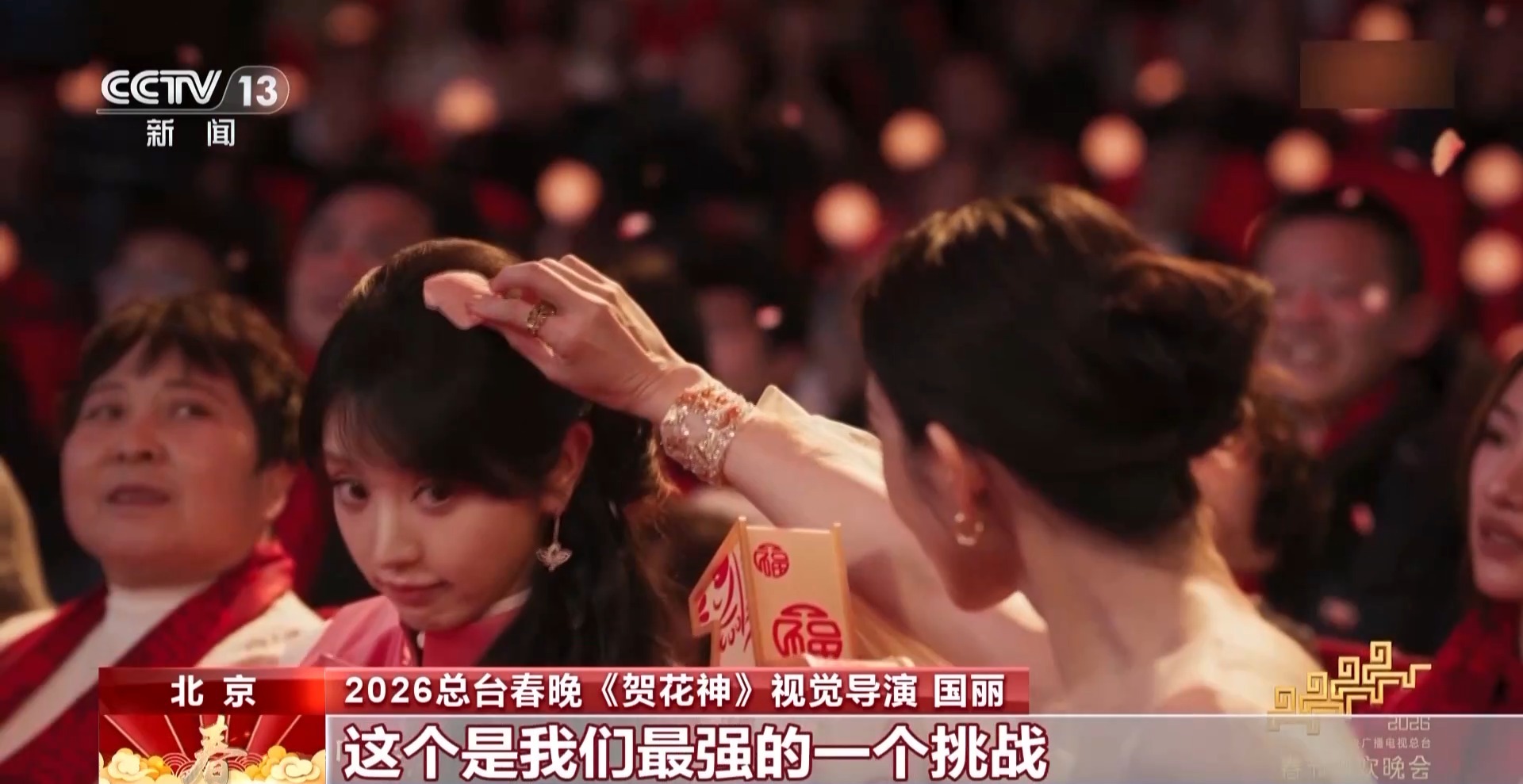 2026总台春晚《贺花神》视觉导演 国丽:我们还增加了很多观众的反应,比如下桂花雨、飘花瓣以及手接杏花道具,小朋友拿到杏花的绽放的那种感觉,观感层次会更丰富,不是只是观看舞台之上的表演。