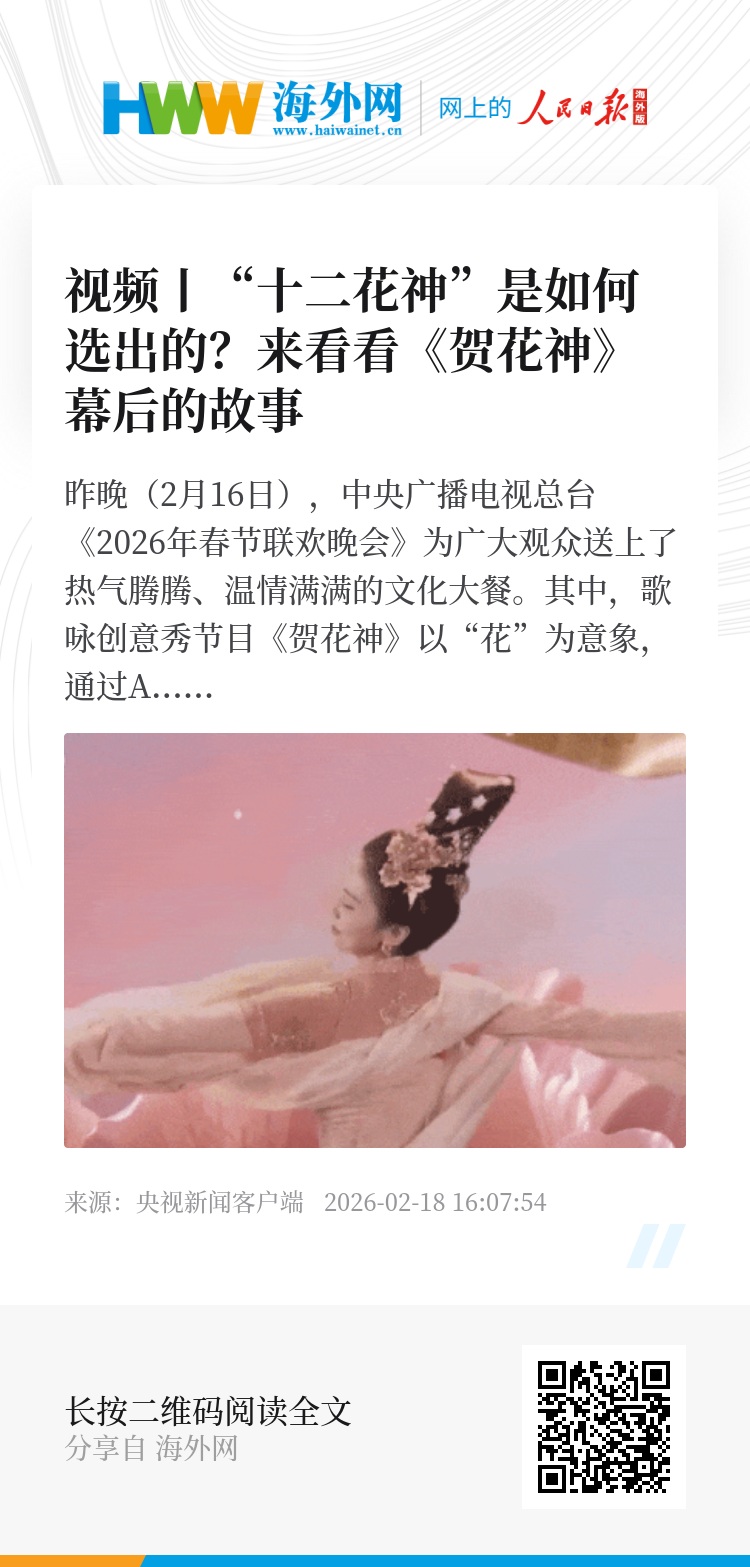 昨晚(2月16日),中央广播电视总台《2026年春节联欢晚会》为广大观众送上了热气腾腾、温情满满的文化大餐。其中,歌咏创意秀节目《贺花神》以“花”为意象,通过AI生成影像与实景舞台扩展技术,打造了“一月一人一景,一花一态一观”的视觉盛景。