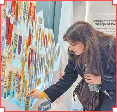 参加米兰冬奥会的运动员在冬奥村智能徽章交换站留下新春祝福。环球时报记者 陈 涛摄
