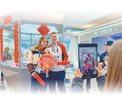 在米兰冬奥村智能徽章交换站,浓浓的中国春节元素吸引各国运动员来此拍照打卡。环球时报记者 陈 涛摄