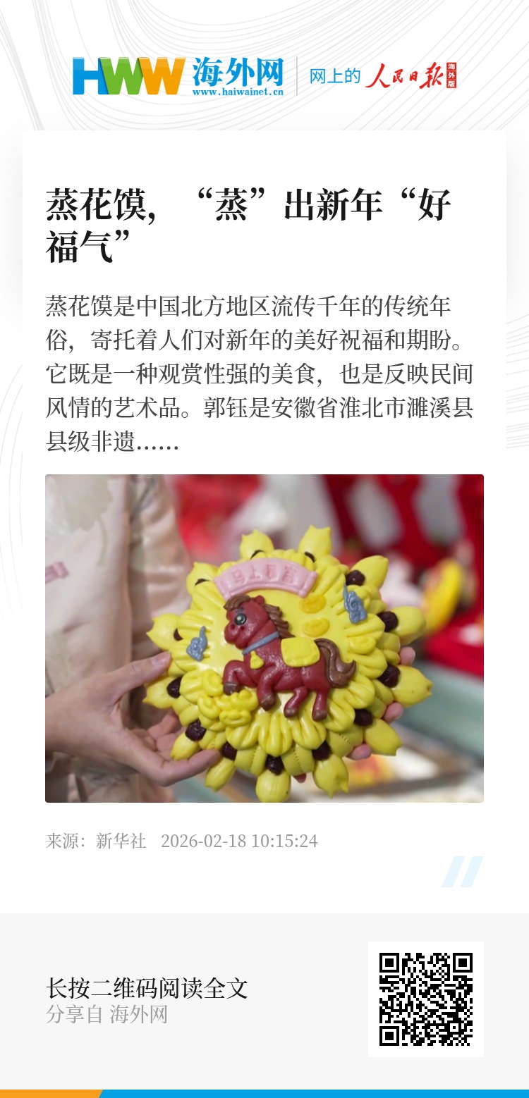 郭钰是安徽省淮北市濉溪县县级非遗古城花馍制作技艺代表性传承人。她在沿袭传统花馍制作技艺的同时,创新融入现代审美与健康理念,创作出一个个惟妙惟肖、形式各异的花馍。郭钰为大家创作了一款名叫“马到成功”的花馍,祝大家马年大吉、马到成功!