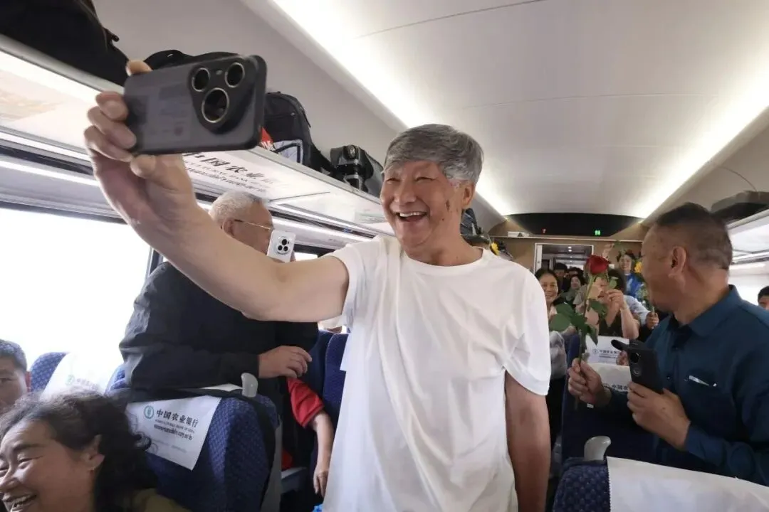 2月4日,“一路欢歌一路情”中老铁路春节文化主题活动在列车上举行。这是旅客用手机记录下美好瞬间。周灿 摄