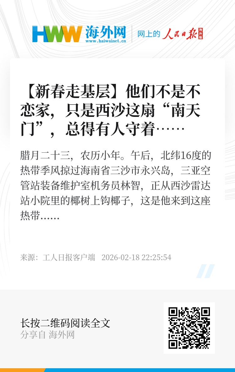 午后,北纬16度的热带季风掠过海南省三沙市永兴岛,三亚空管站装备维护室机务员林智,正从西沙雷达站小院里的椰树上钩椰子,这是他来到这座热带小岛工作后的第12个春节。