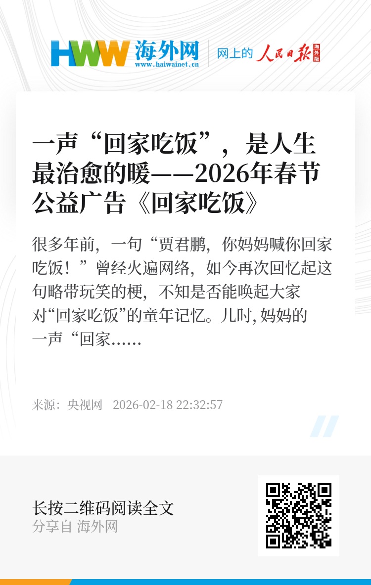 2026年总台春节公益广告《回家吃饭》就以这一份温暖为创意缘起,用一组组明快的快切镜头,将天南海北、不同乡音里妈妈喊出的一声声“回家吃饭”巧妙串联:山谷间的呼唤、“数到三”的催促、小伙伴间的传话等等,勾勒出千家万户最动人的亲情模样,将每位观众瞬间拉回满是爱意的童年时光。主创团队正是希望通过这支公益广告,不仅唤醒人们心底的童年美好,更能通过“回家吃饭”的场景的演变,描摹出每个成年人的成长轨迹。