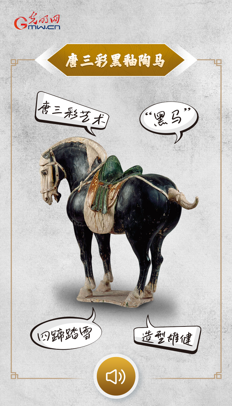“据我所知,现代人用‘黑马’比喻出人意料的优胜者,有着极好的寓意。而我恰好全身披黑釉,又形态健硕,被人们赋予了无畏驰骋、闯出精彩的祥瑞内涵。事实上,在我所生活的唐代,像我一样头小、臀圆、体态匀称、膘肥体壮的马,也是当时人们心目中矫健的良驹,备受追捧。”