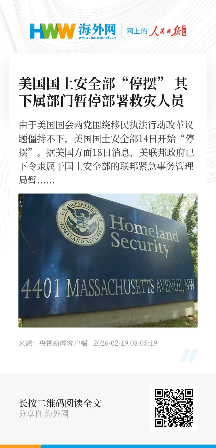 由于美国国会两党围绕移民执法行动改革议题僵持不下,美国国土安全部14日开始“停摆”。