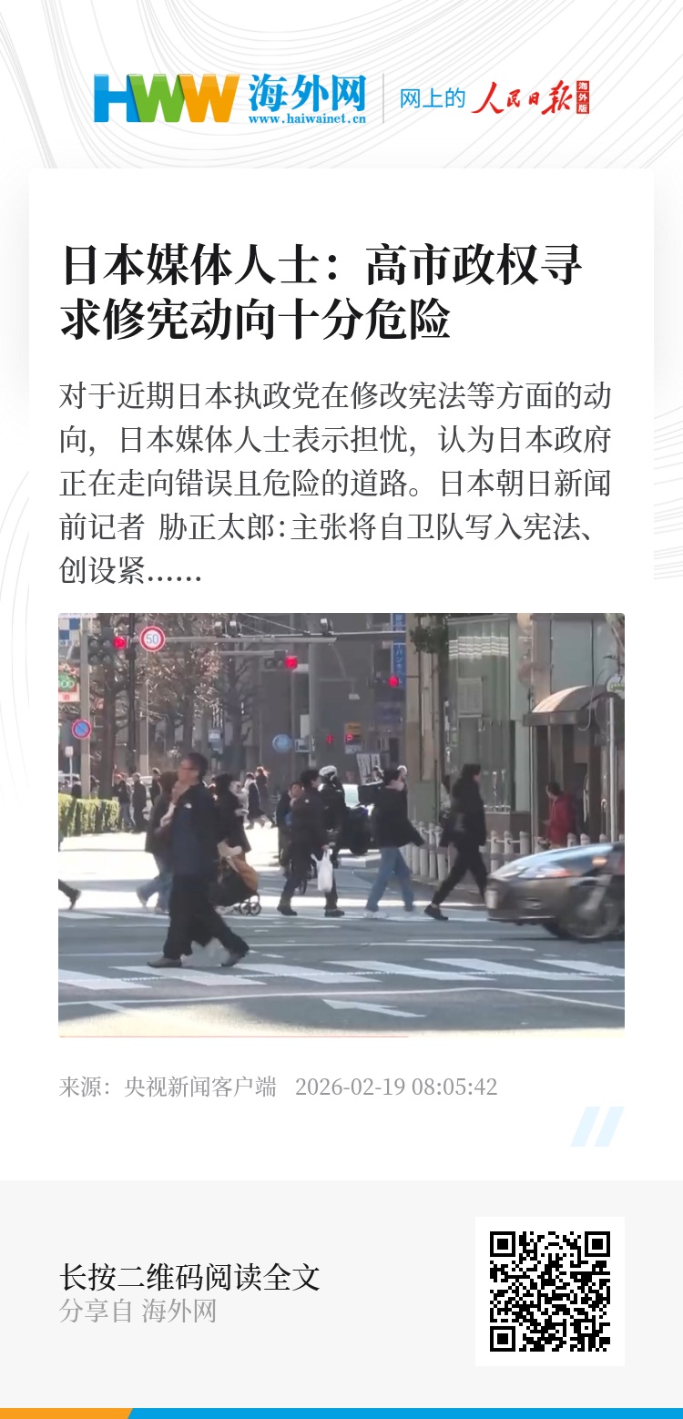 对于近期日本执政党在修改宪法等方面的动向,日本媒体人士表示担忧,认为日本政府正在走向错误且危险的道路。