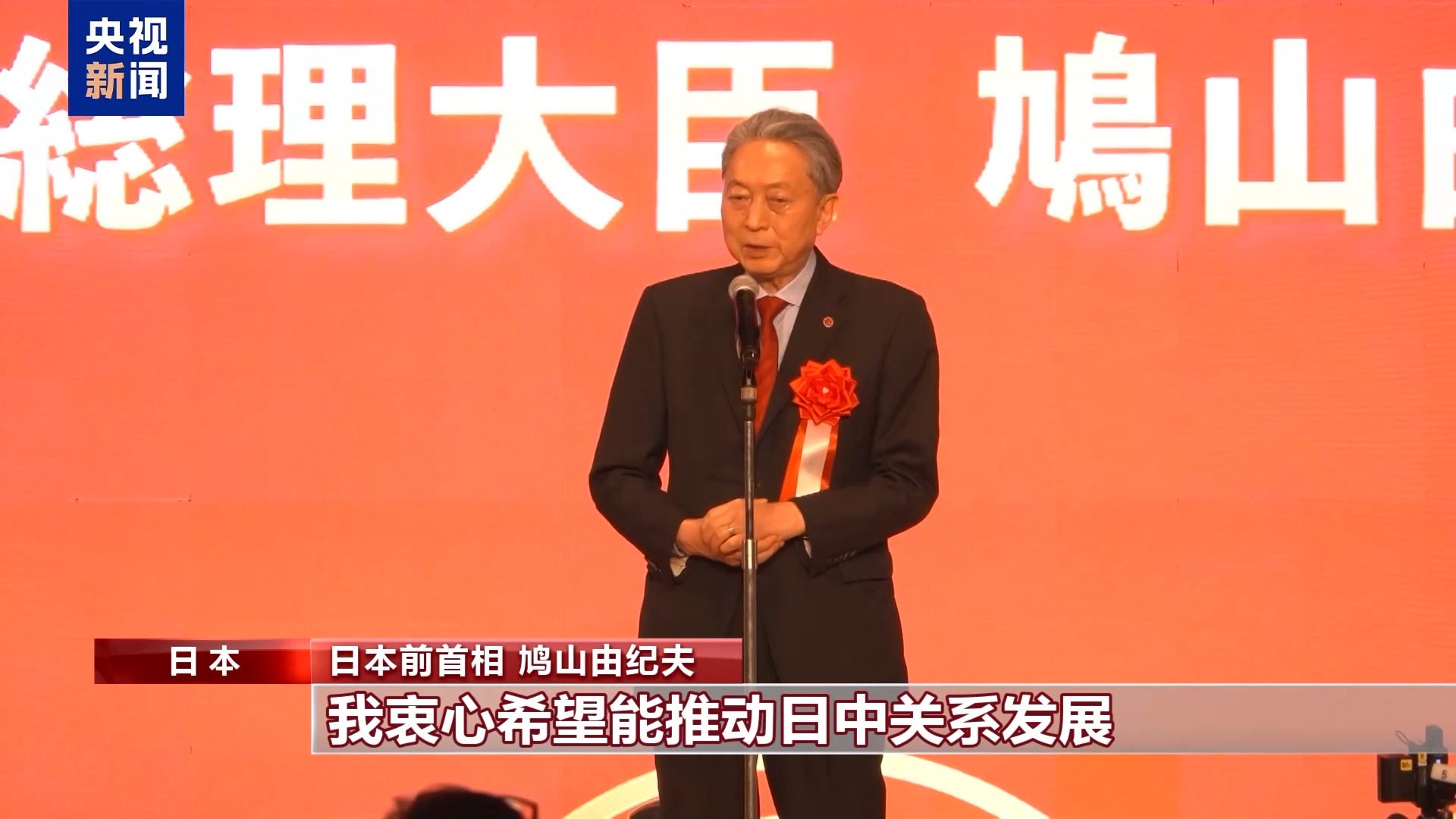 日本前首相 鸠山由纪夫:我衷心希望能推动日中关系发展,并引导日本在世界舞台上的定位朝着正确的方向前进。在这个过程中,希望能得到各位的支持,携手面向未来。
