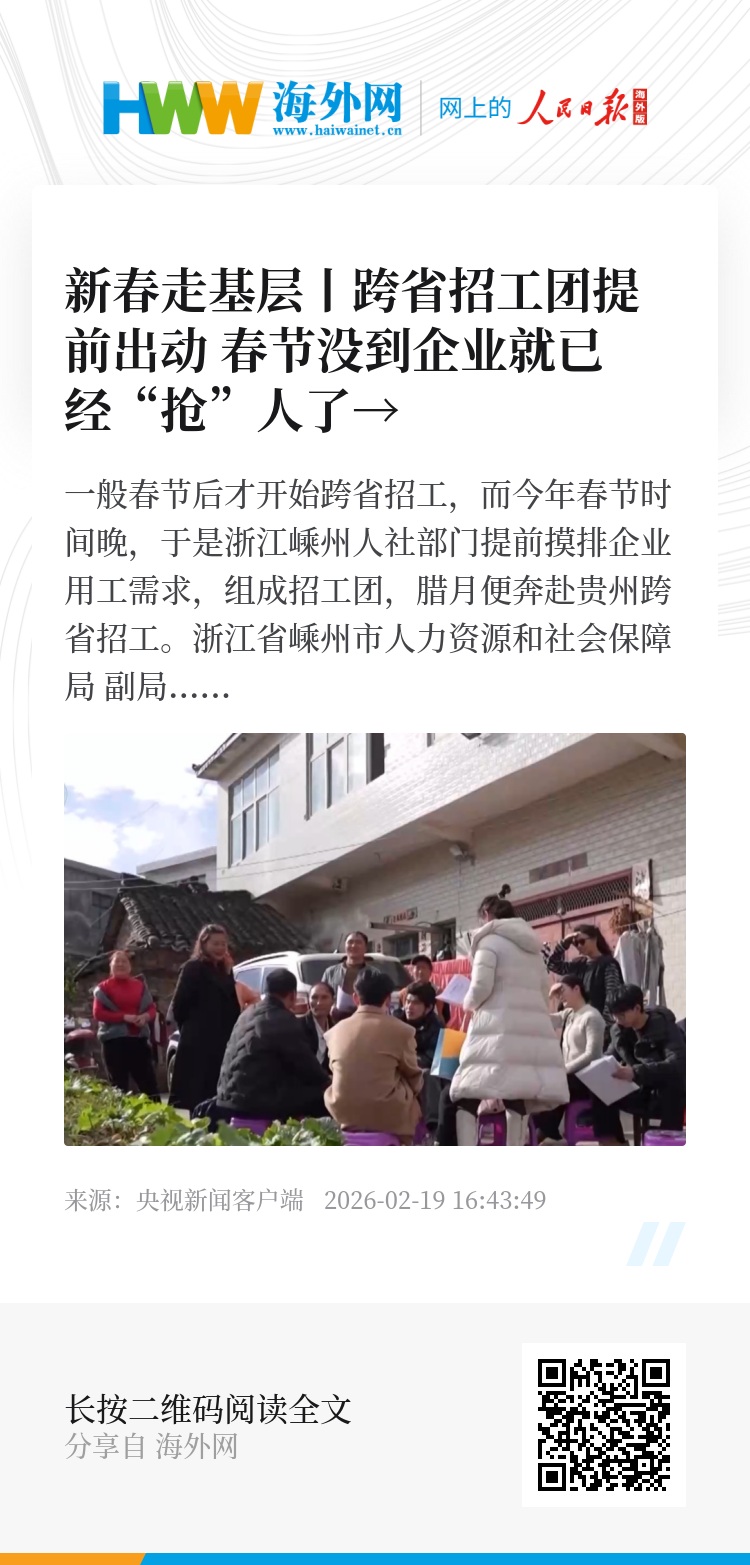 一般春节后才开始跨省招工,而今年春节时间晚,于是浙江嵊州人社部门提前摸排企业用工需求,组成招工团,腊月便奔赴贵州跨省招工。