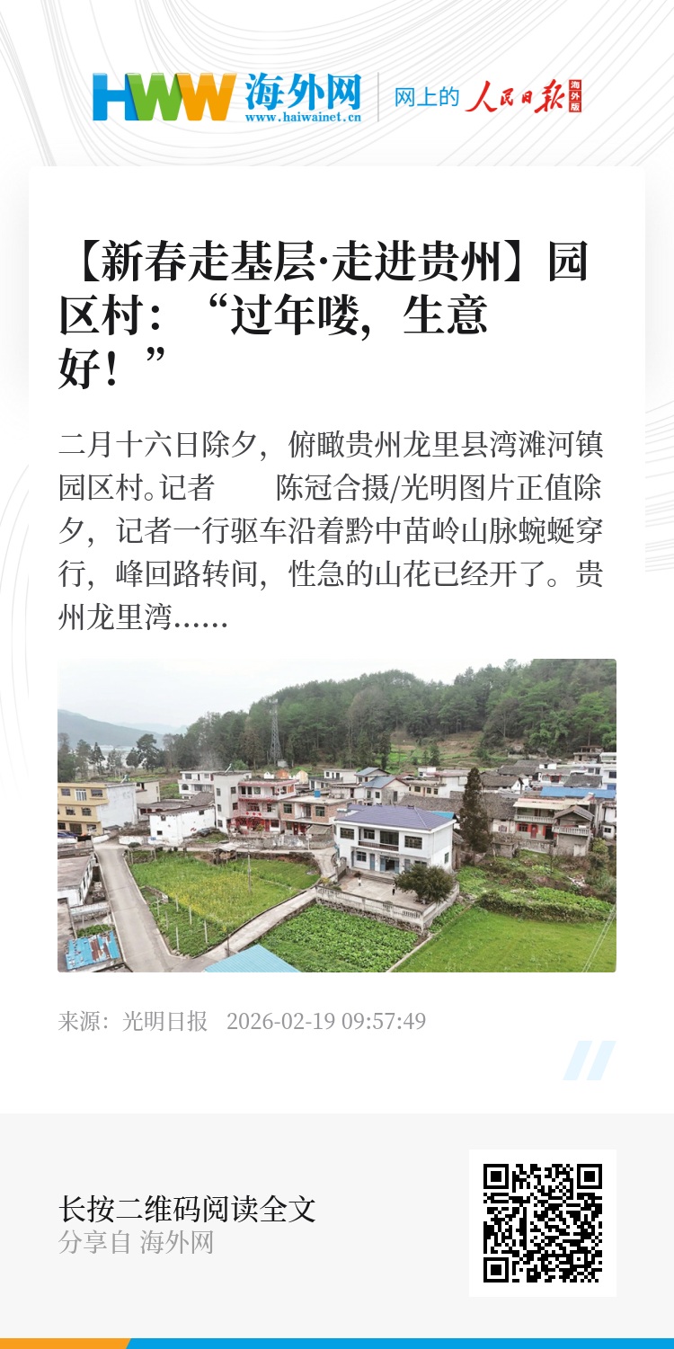贵州龙里湾滩河镇园区村正沉浸在浓浓的年味里。错落的农家小楼间,时时传来鞭炮声,檐角挂着的红灯笼在山风里摇摇摆摆,大锅炖煮腊肉的香气和辣椒滚进热油锅的味道传得老远老远。