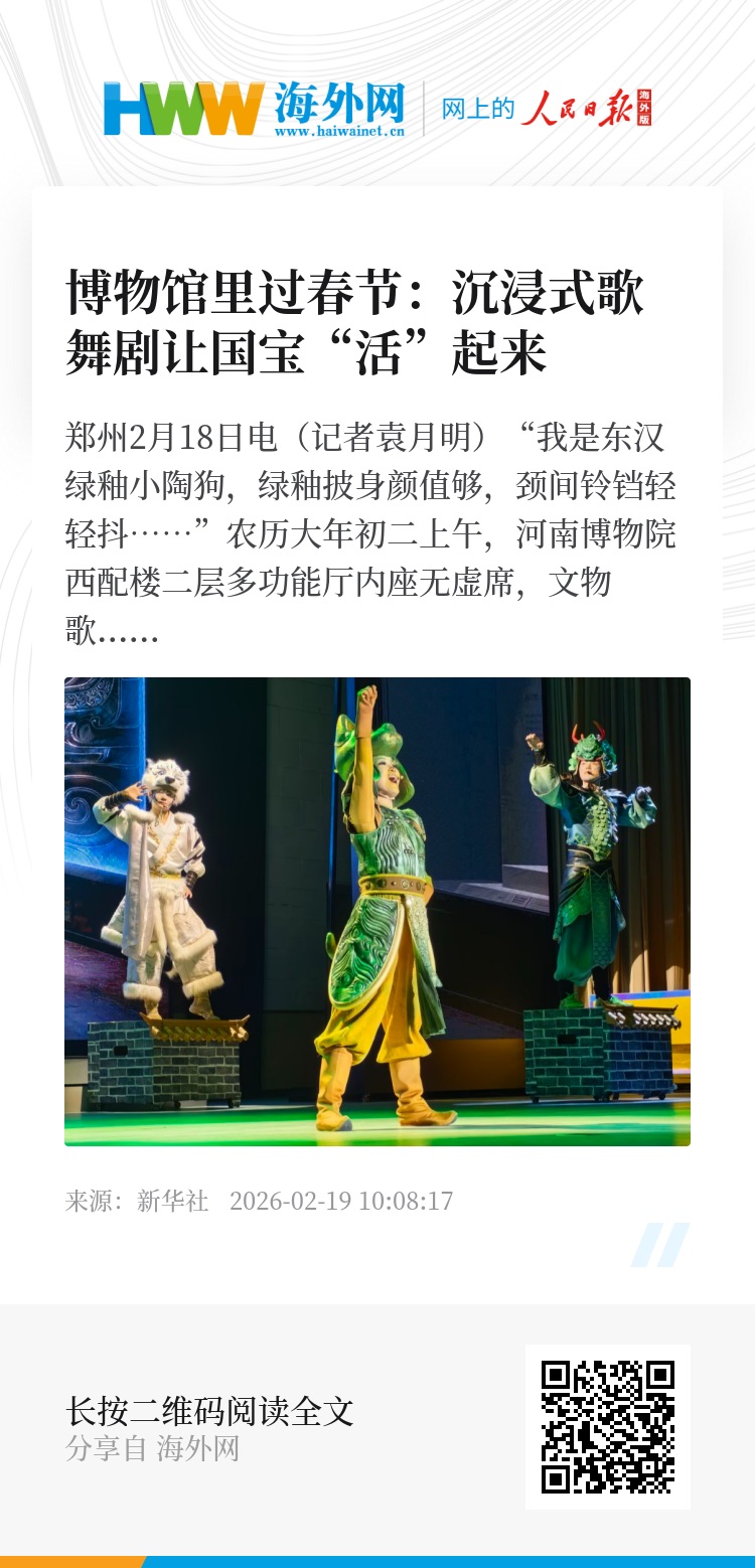 从华夏古乐团的音乐文物复原展演,到《唐宫夜宴》XR大空间沉浸展,再到文物歌舞剧《国宝欢乐耶》……近年来,河南博物院坚持创造性转化、创新性发展,通过数智赋能,打造丰富场景,让馆藏珍贵文物“活”起来、“动”起来、“火”起来,也让更多人穿越时空隧道、感受文明之光。