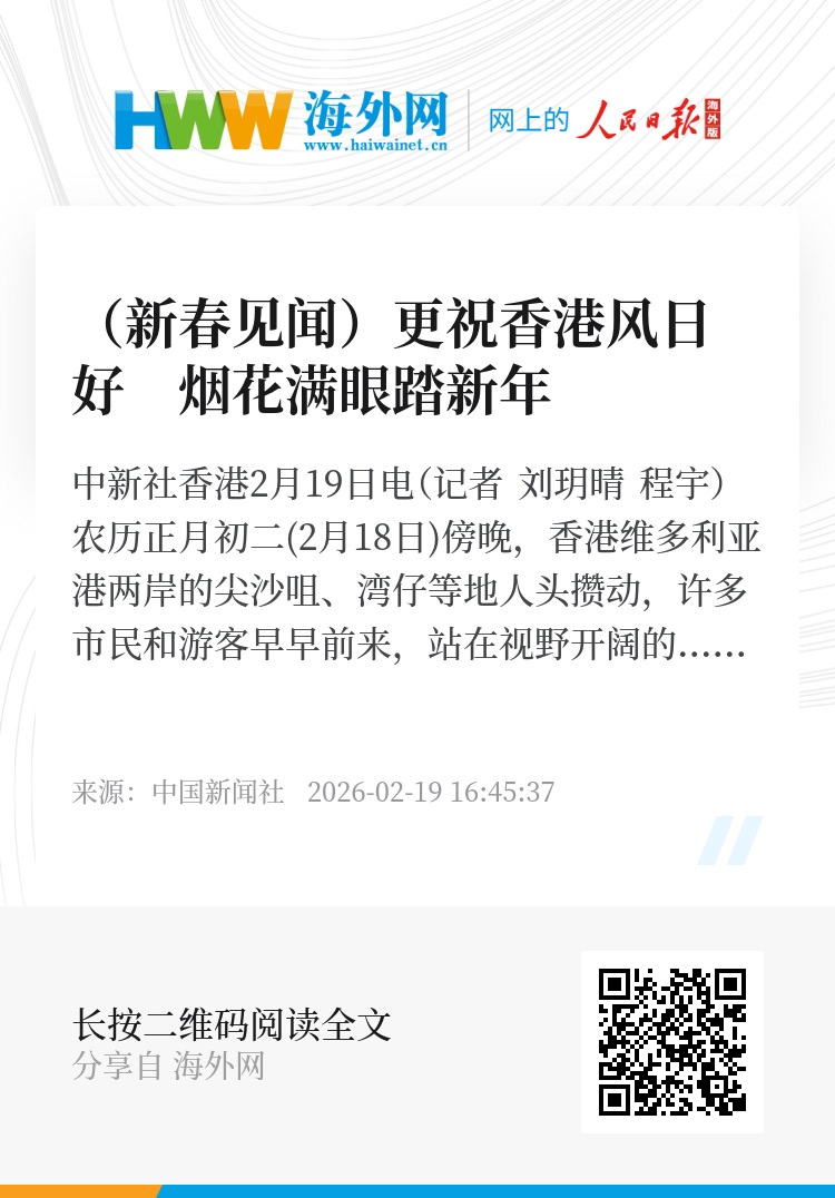 中新社香港2月19日电(记者 刘玥晴 程宇)农历正月初二(2月18日)傍晚,香港维多利亚港两岸的尖沙咀、湾仔等地人头攒动,许多市民和游客早早前来,站在视野开阔的位置,等待晚上8点举行的新春烟花汇演。