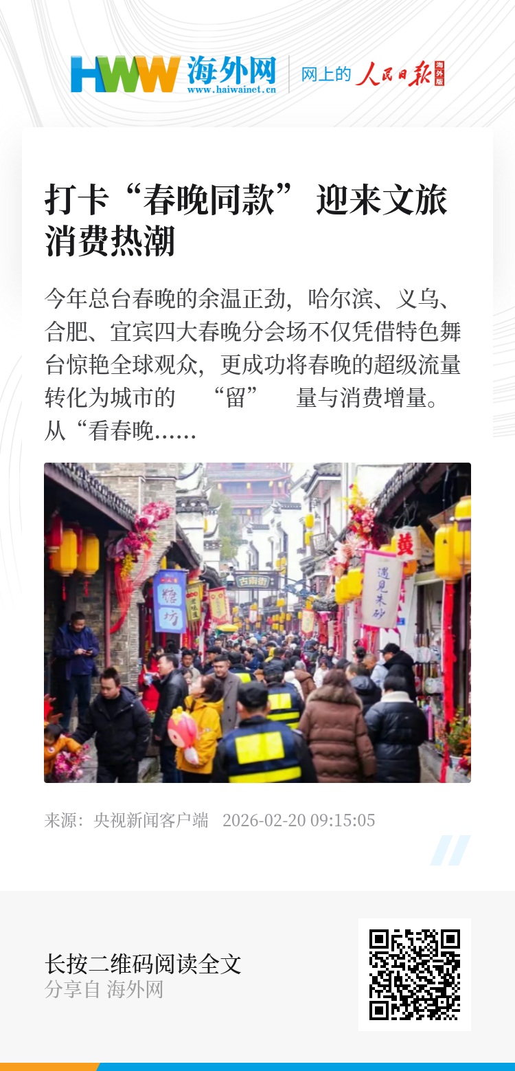 今年总台春晚的余温正劲,哈尔滨、义乌、合肥、宜宾四大春晚分会场不仅凭借特色舞台惊艳全球观众,更成功将春晚的超级流量转化为城市的 “留” 量与消费增量。从“看春晚”到“游春晚”,这个春节假期,打卡“春晚同款”成为一股新的文旅潮流。