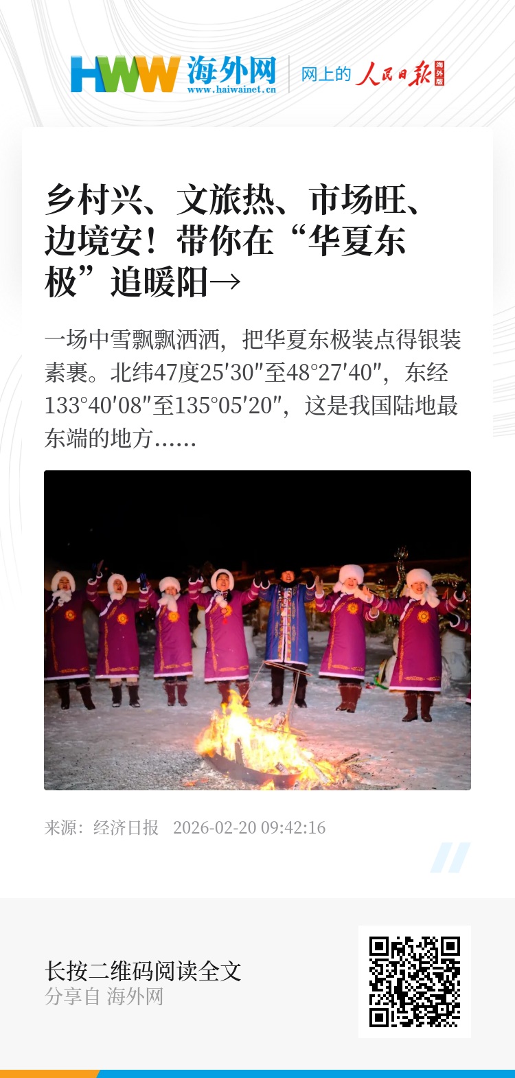 丙午马年来临之际,记者走进抚远小城,在鞭炮声声、白雪皑皑中感受乡村兴、文旅热、市场旺、边境安的新春气象。