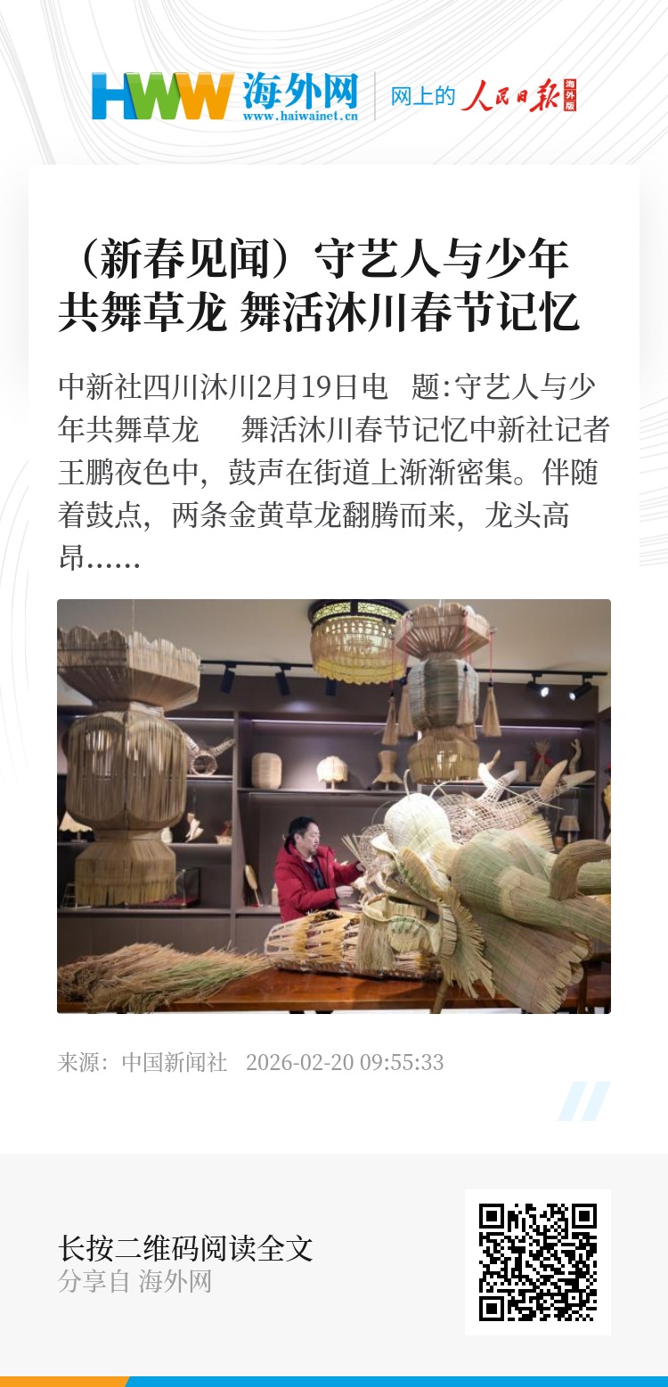 中新社四川沐川2月19日电 题:守艺人与少年共舞草龙 舞活沐川春节记忆
