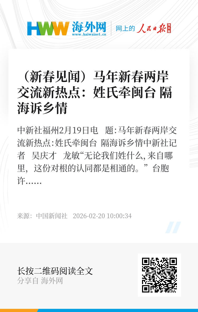 对于马年新春两岸姓氏交流热潮,福建社会科学院两岸融合发展研究中心秘书长苏美祥研究员认为,姓氏文化作为联结两岸的重要纽带,正持续加深台胞对根、祖、脉的认同,推动两岸同胞在常来常往中越走越近、情谊愈发深厚,为两岸融合发展注入持久的温情力量。