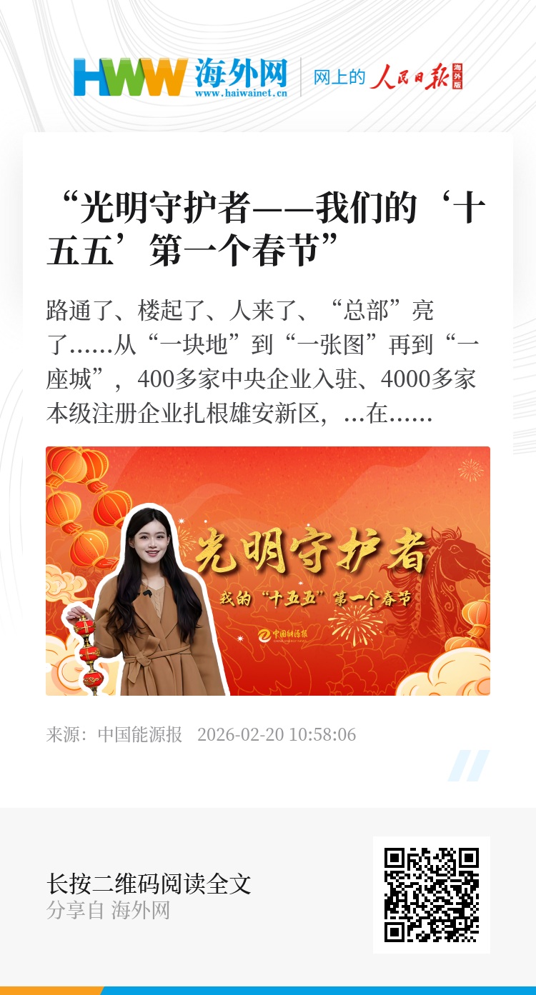 路通了、楼起了、人来了、“总部”亮了......从“一块地”到“一张图”再到“一座城”,400多家中央企业入驻、4000多家本级注册企业扎根雄安新区,...在刚刚过去的2025年,雄安用电量超66亿度。即将到来的“十五五”第一个春节,预计用电量也将超过8000万度。这里是雄安,2026年春节。当万家团圆时,有一群人的“年”,却在看不见的电流声和随时响起的电话铃里。今天,让我们走进这群人的“年”,看看“十五五”第一个春节的“城市灯火”,是如何被守护的?”