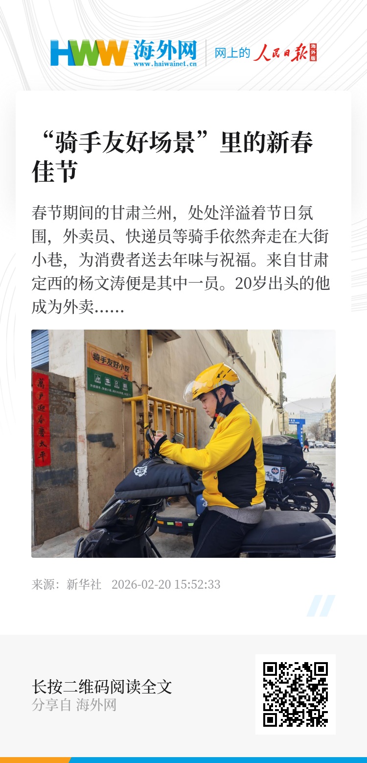农历马年已到,“骑手友好小区”的标识在城市里越来越多,骑手们也继续穿梭在大街小巷,为大家的舒心生活奔行。(记者崔翰超、李杰)