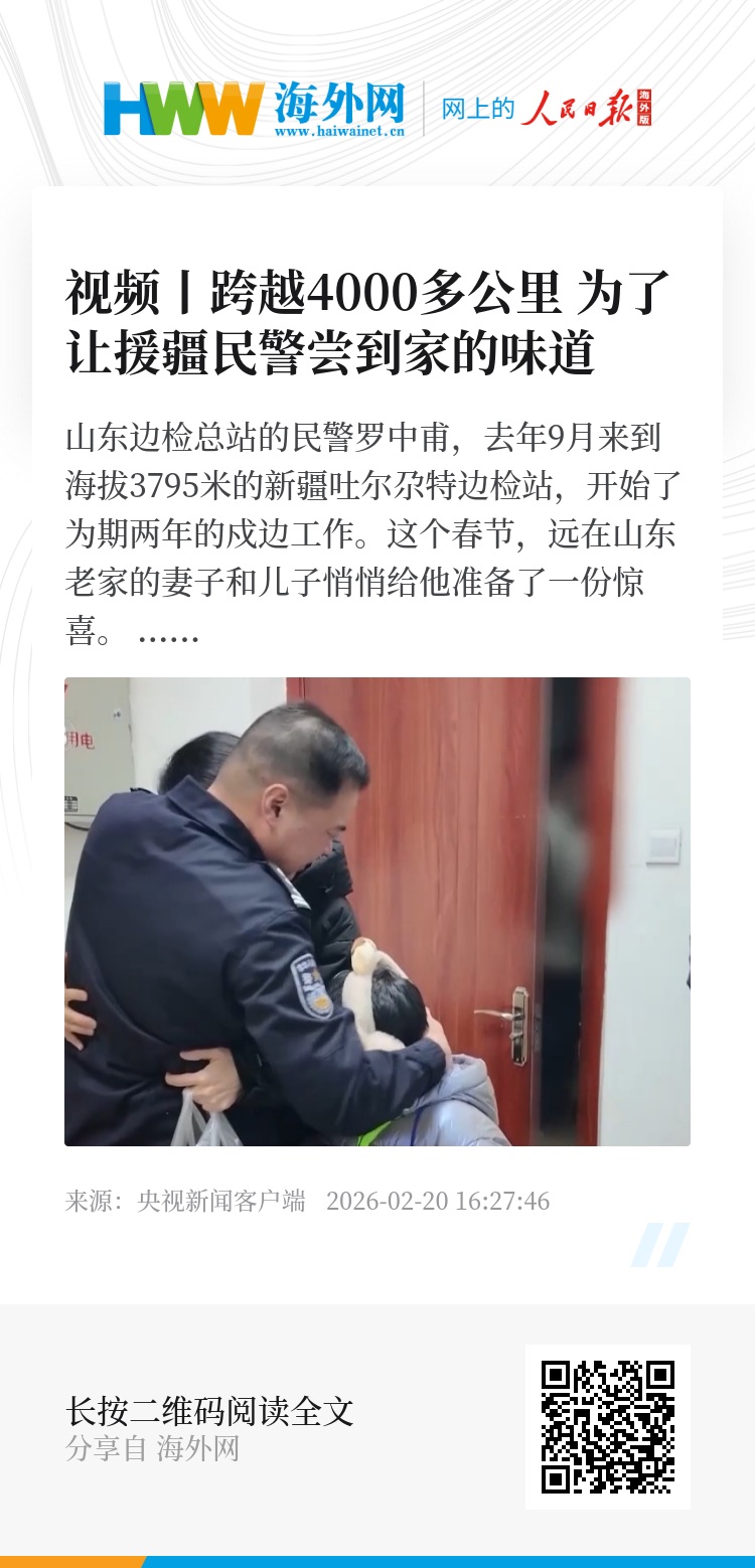 这个春节,在新疆吐尔尕特国门口岸,援疆民警罗中甫还在岗位上执勤,而在山东章丘,他的家里人正在给即将见面的罗中甫准备家乡可口美食。