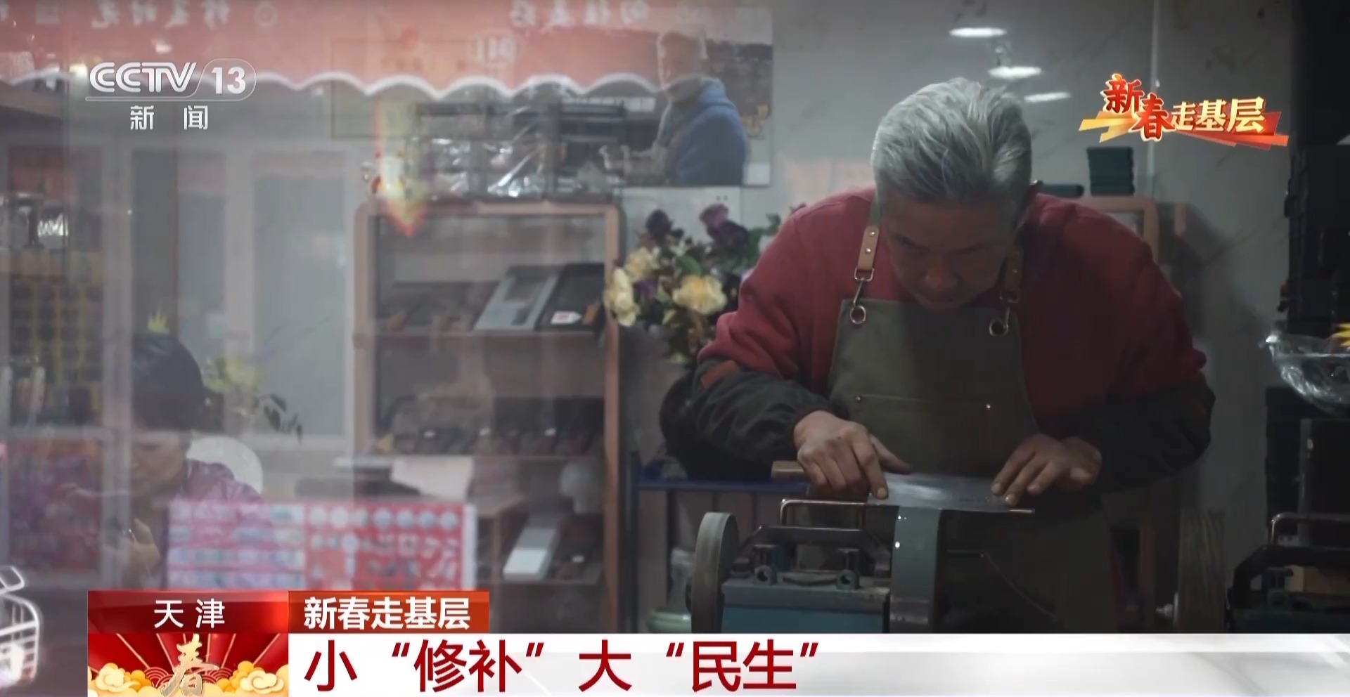 早上9点,天津市河北区王串场街道的“修补”巷里,卖东西的吆喝声、街坊的唠嗑声此起彼伏。临近春节,附近居民的修补需求明显增多,修鞋、磨刀、缝补衣物……一家家不起眼的小铺里,来来往往的市民络绎不绝。