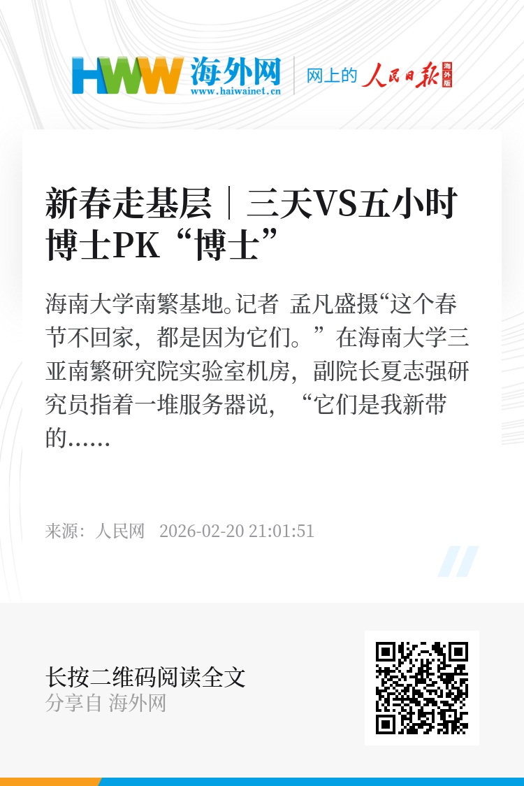 “这个春节不回家,都是因为它们。”在海南大学三亚南繁研究院实验室机房,副院长夏志强研究员指着一堆服务器说,“它们是我新带的‘博士生’。”