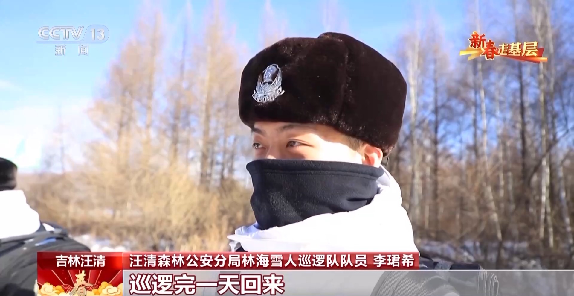 汪清森林公安分局林海雪人巡逻队队员 李珺希:走的时候其实感觉不到,巡逻完一天回来,感觉耳朵胀胀热热的,回来才发现冻伤了。