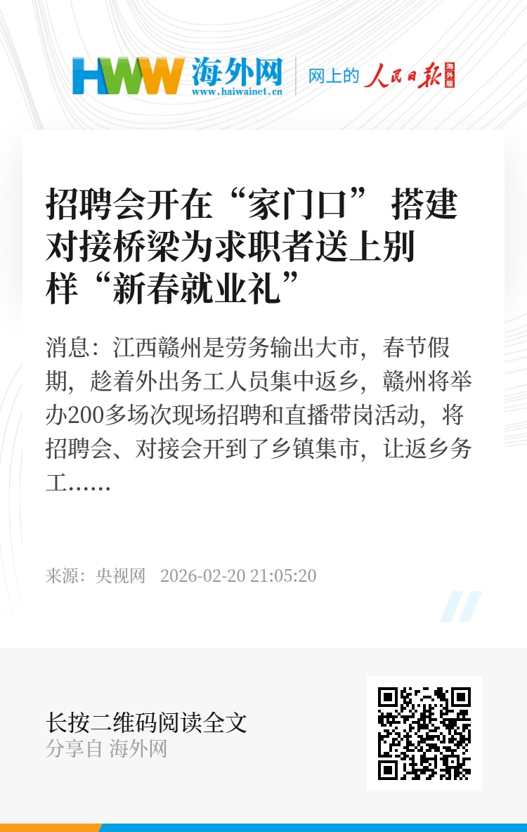 央视网消息:江西赣州是劳务输出大市,春节假期,趁着外出务工人员集中返乡,赣州将举办200多场次现场招聘和直播带岗活动,将招聘会、对接会开到了乡镇集市,让返乡务工人员在“家门口”就能方便地找工作。