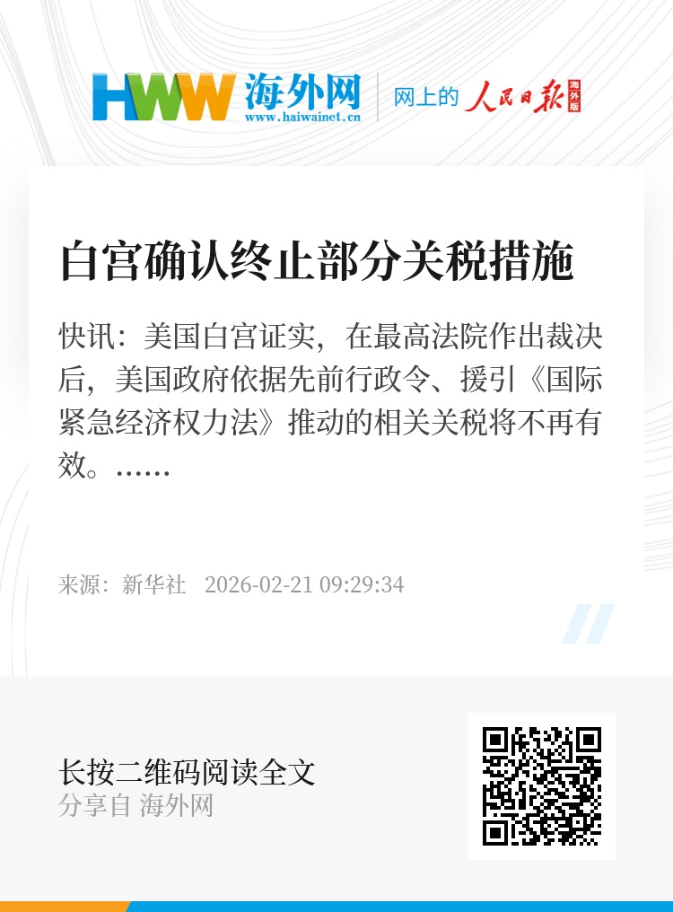 新华社快讯:美国白宫证实,在最高法院作出裁决后,美国政府依据先前行政令、援引《国际紧急经济权力法》推动的相关关税将不再有效。