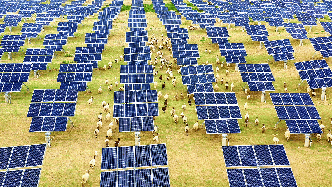 短短数年,塔拉滩上竖起了一排排整齐划一的光伏板,更令人惊喜的是,光伏板下的沙地渐渐换上了“绿装”——耐阴耐旱的牧草茁壮成长,羊群在板间悠然觅食,一幅绿电与生态共生的活力图景徐徐展开。