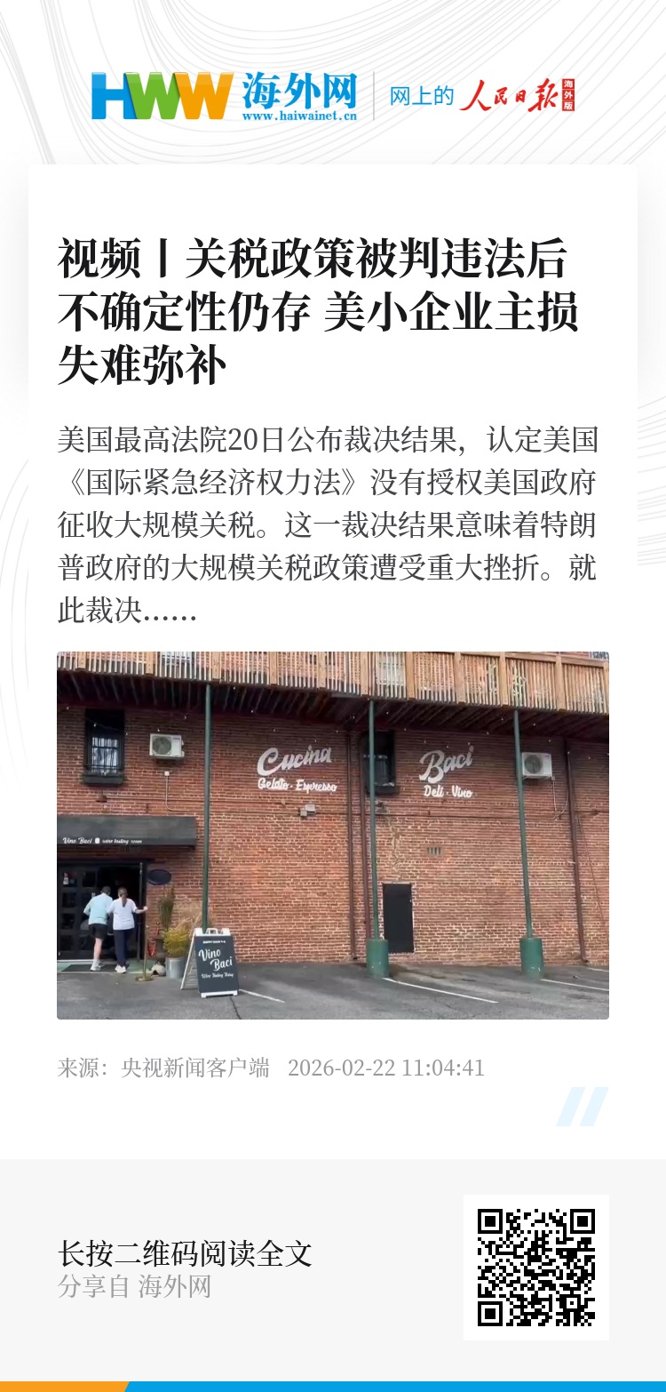 就在裁决公布当天,美国总统特朗普就宣布依据《1974年贸易法》第122条,对来自所有国家和地区的商品加征10%的关税。这些因素令企业主们面临的前景更加不明朗。美国政府此前基于美国《国际紧急经济权力法》征收的上千亿美元关税实际上由美国企业和消费者承担,已经给很多美国企业带来沉重负担、打乱企业的生产经营和发展规划。