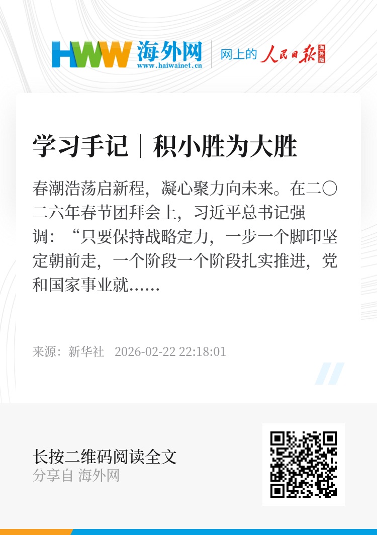 春潮浩荡启新程,凝心聚力向未来。在二〇二六年春节团拜会上,习近平总书记强调:“只要保持战略定力,一步一个脚印坚定朝前走,一个阶段一个阶段扎实推进,党和国家事业就一定会不断积小胜为大胜,我们的目标就一定能实现。”