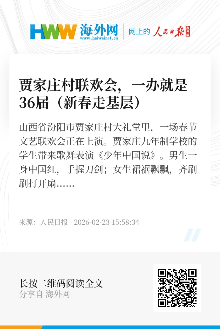 山西省汾阳市贾家庄村大礼堂里,一场春节文艺联欢会正在上演。贾家庄九年制学校的学生带来歌舞表演《少年中国说》。男生一身中国红,手握刀剑;女生裙裾飘飘,齐刷刷打开扇子。“多参加文艺活动,能让学生更自信、更阳光。”校长高辰光说。