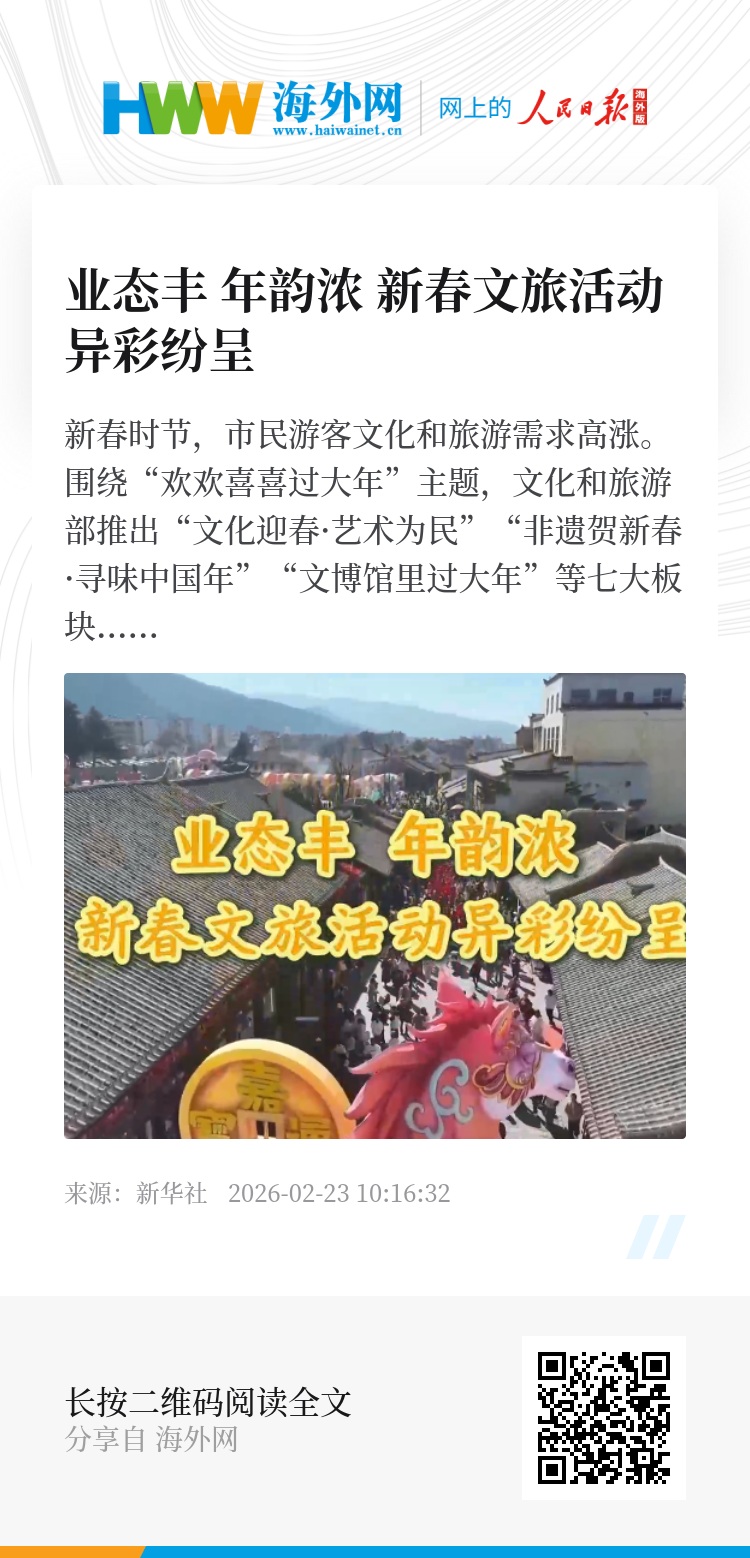 放眼神州大地,新春文旅市场热力十足、游人如织。业态丰、年韵浓,各地新春文旅活动异彩纷呈。
