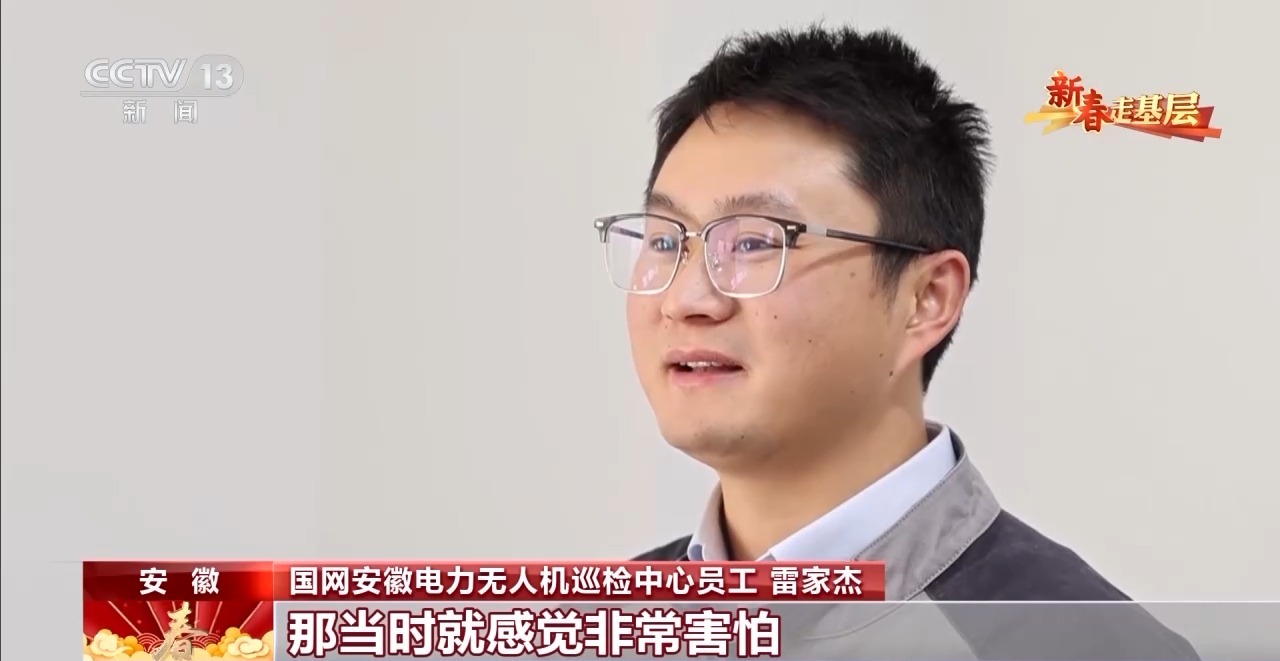 国网安徽电力无人机巡检中心员工 雷家杰:第一次飞,就把无人机搞坏了。一架好几万,顶我一年的工资,当时就感觉非常害怕。现场不敢飞了,一看飞机离塔那么近,我手抖,后来腿都抖。