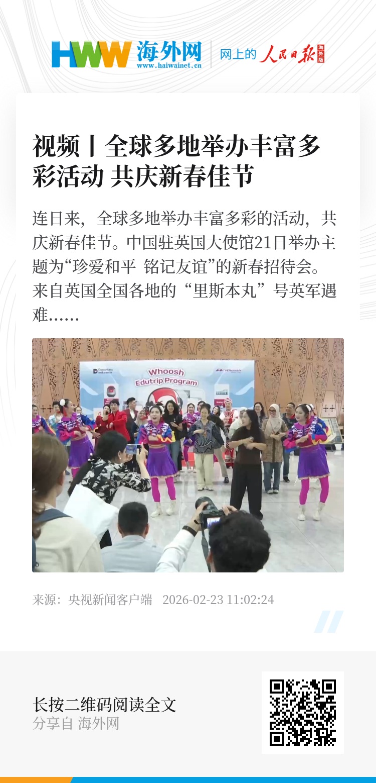 连日来,全球多地举办丰富多彩的活动,共庆新春佳节。
