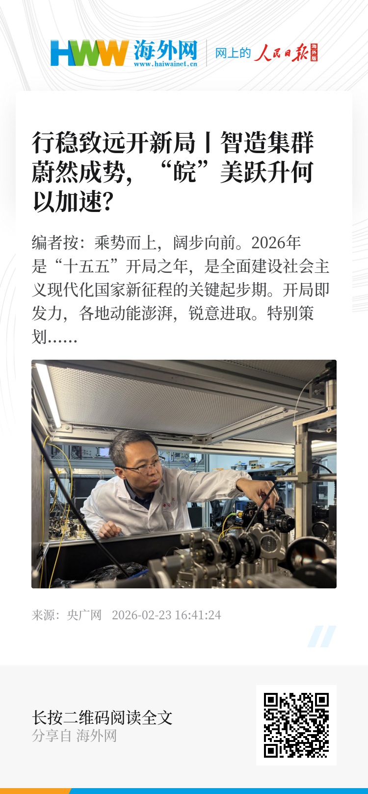 数字背后,是发展逻辑的持续深化,是“新”动能的不断集聚。从科技自立自强的原始突破到新兴产业的集群发展,再到文旅消费的活力迸发,“皖”美跃升持续加速,为“十五五”开局奠定坚实基础。
