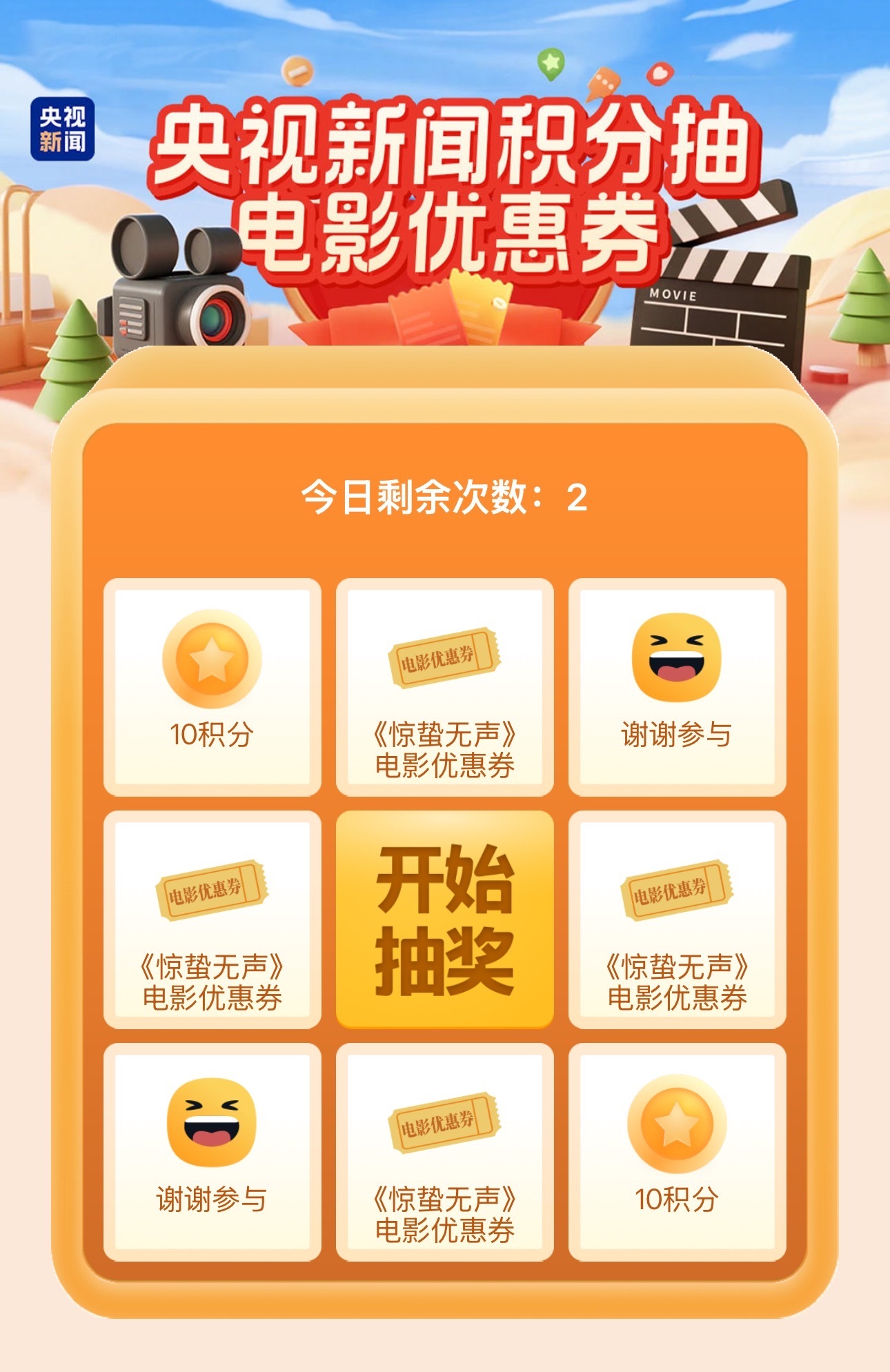 央视新闻送电影票优惠券啦