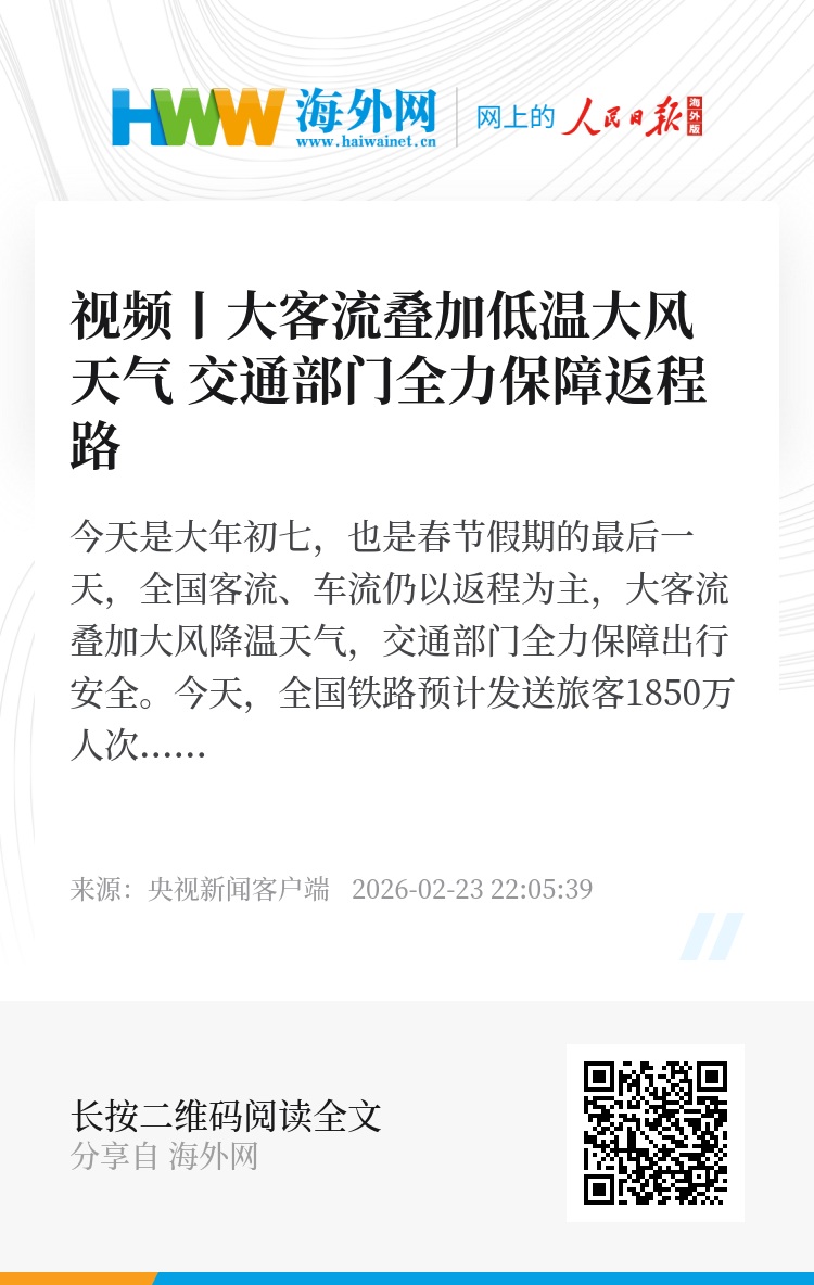 今天是大年初七,也是春节假期的最后一天,全国客流、车流仍以返程为主,大客流叠加大风降温天气,交通部门全力保障出行安全。