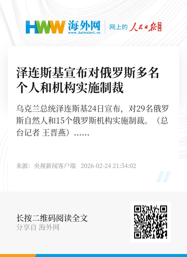 乌克兰总统泽连斯基24日宣布,对29名俄罗斯自然人和15个俄罗斯机构实施制裁。(总台记者 王晋燕)