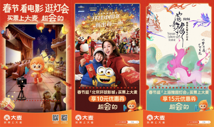 作为连接电影、演唱会、旅游等40多个“现实娱乐”品类的超级入口,大麦APP在春节期间特别推出一系列“电影+”优惠活动,以会员买一赠一、家庭观影套票、“灯会+电影”双人券包、民俗福利券等多样化权益助力“跟着电影去旅游”成为新年俗。大麦娱乐数据显示,今年春节,大麦平台上线旅游服务项目超1200个,灯会庙会、民俗活动逾100场,有效连接跨业态消费。