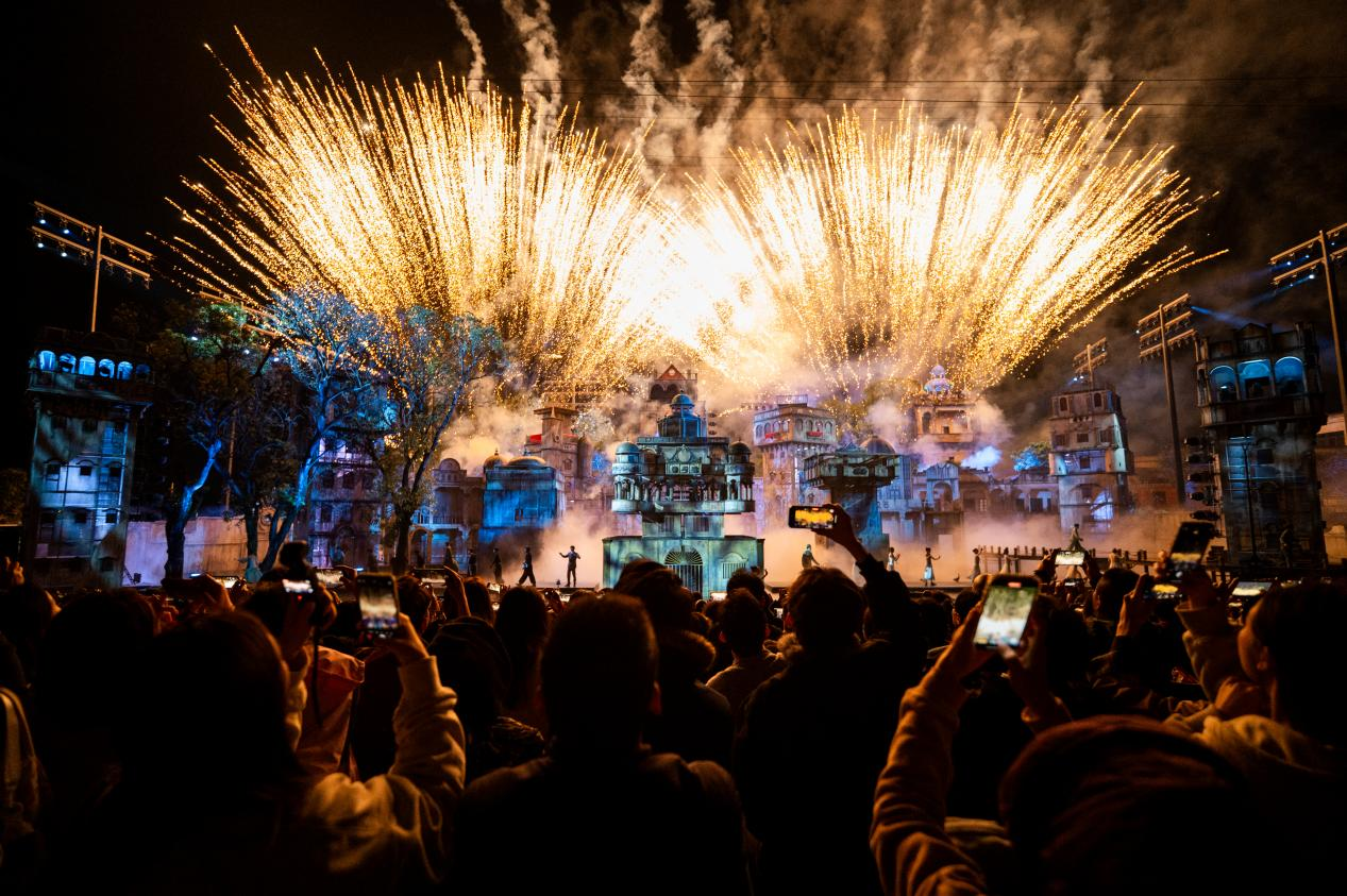 梦回开平·侨海华韵(开平不夜城)人气火爆。荧光国潮贺岁、新春音乐会、烟花秀等活动日均百场、日夜不停,成为市民游客夜游打卡的热门选择。