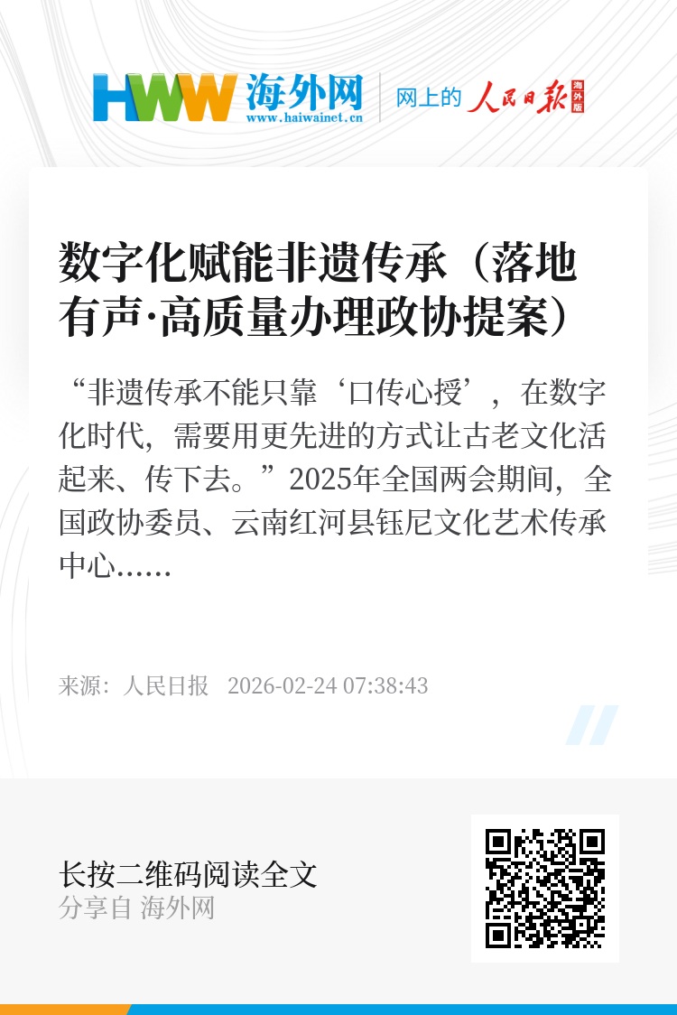 “非遗传承不能只靠‘口传心授’,在数字化时代,需要用更先进的方式让古老文化活起来、传下去。”2025年全国两会期间,全国政协委员、云南红河县钰尼文化艺术传承中心校长杨钰尼提交的《关于建立非物质文化遗产数字化资源库的提案》,引发广泛关注。