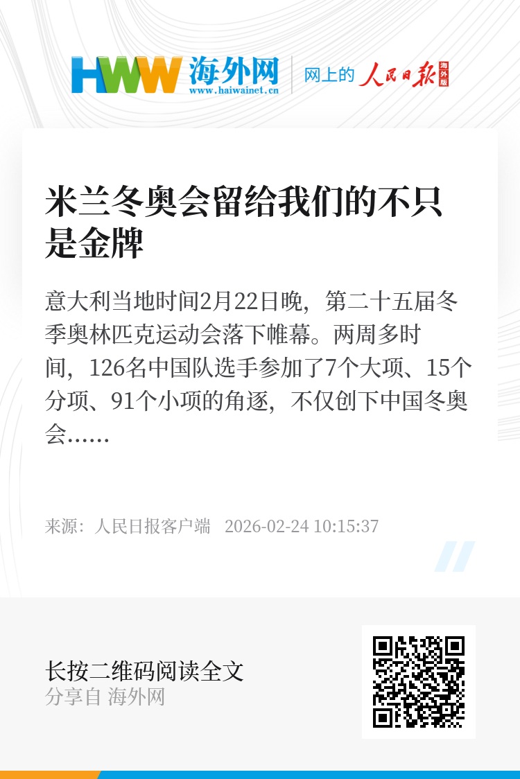 米兰画上了句点,中国代表团在米兰冬奥会上取得了优异成绩,但中国冰雪运动“追赶者”的角色没有改变。站在新的起点,我们应把这些动人瞬间转化为普及冰雪运动、崇尚体育精神的社会共识,让拼搏成为时代前进的注脚。