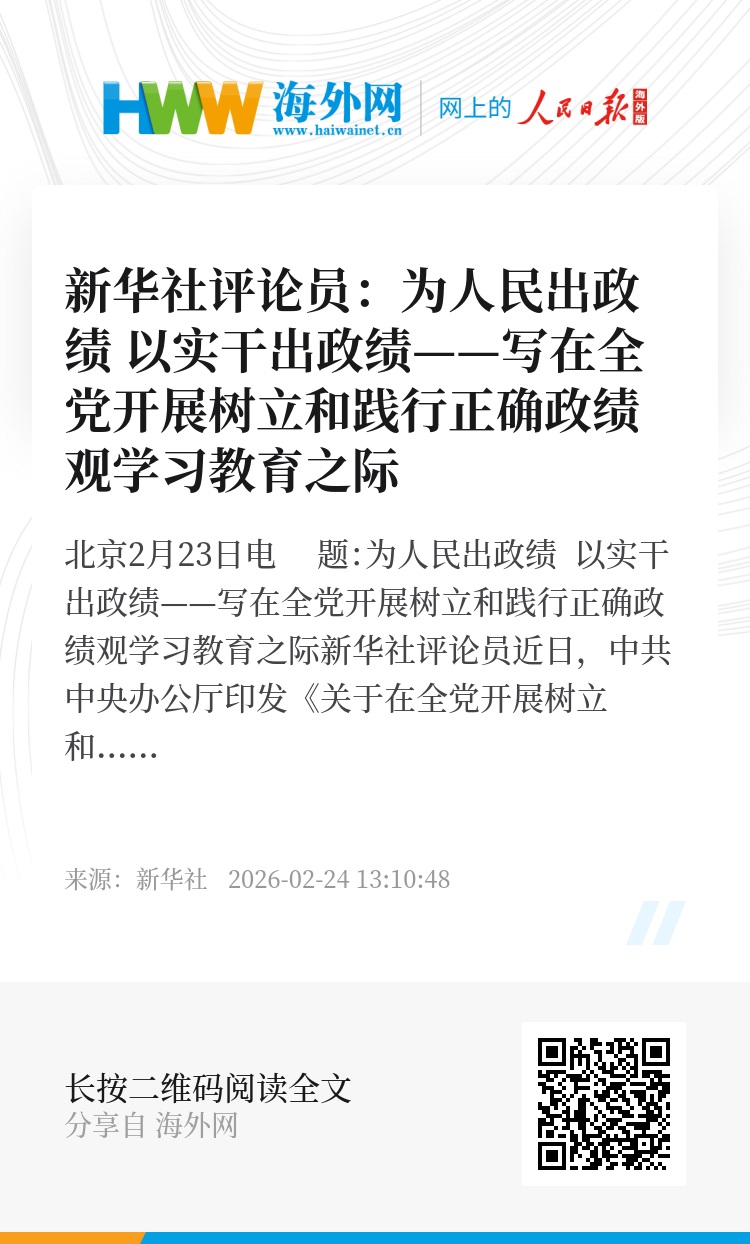 新华社北京2月23日电 题:为人民出政绩 以实干出政绩——写在全党开展树立和践行正确政绩观学习教育之际